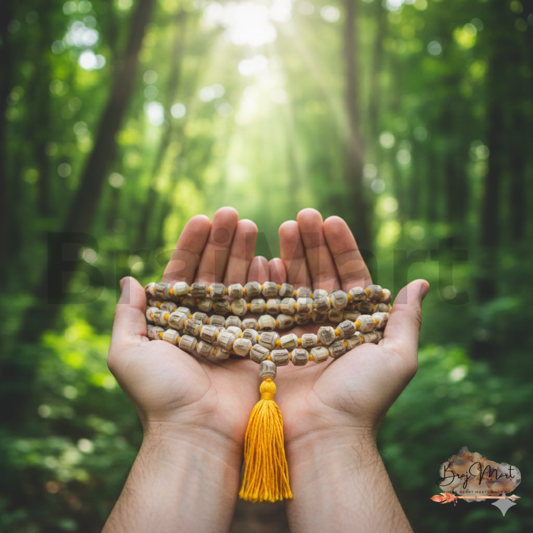 Original Tulsi Japa Mala – 108 Beads – 10MM is a sacred and powerful chanting mala made from authentic Tulsi wood beads, specially designed for deep mantra meditation and daily spiritual practice. With large 10MM beads and the traditional 108 bead count, this mala offers a strong spiritual presence and comfortable grip for focused japa.Tulsi is considered extremely sacred in Vaishnav tradition and is deeply connected to Lord Krishna and Lord Vishnu. Chanting on a Tulsi mala is believed to purify the mind, enhance devotion, and attract divine blessings. The number 108 holds profound spiritual significance in Vedic culture, symbolizing completeness and divine connection.