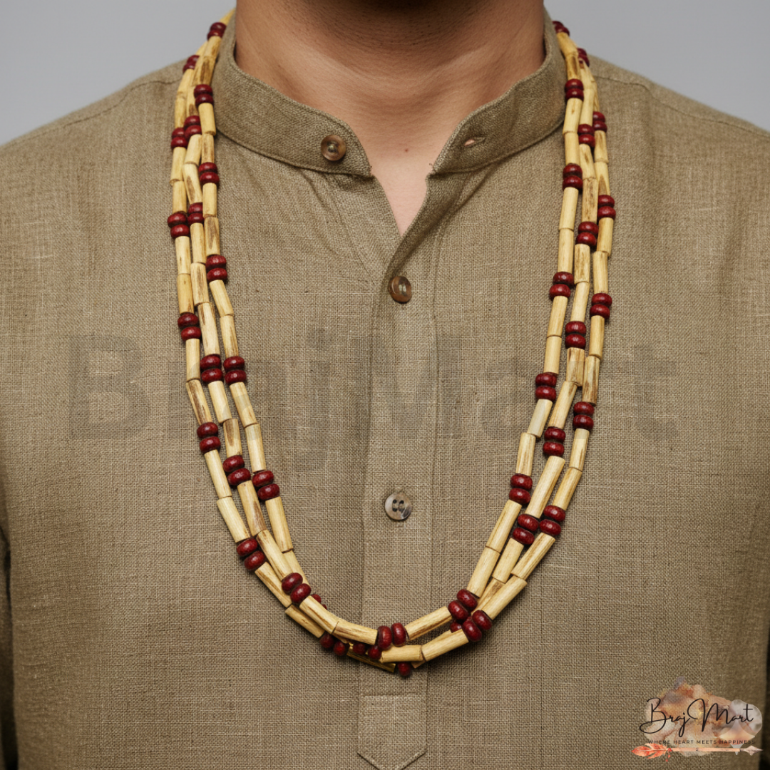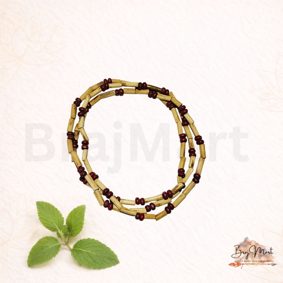 Tulsi Kanthi Mala with Brown Accent Beads – 2 Round is a sacred and beautifully handcrafted devotional neck mala made from authentic Tulsi wood beads, enhanced with subtle brown accent beads for a natural and elegant finish. Designed in a traditional two-round (double-layered) style, this kanthi represents deeper devotion, purity, and spiritual discipline. Tulsi is highly revered in Vaishnav tradition and is especially dear to Lord Krishna and Lord Vishnu. Wearing a Tulsi kanthi symbolizes surrender, protection, and constant remembrance of divine blessings. The brown accent beads blend harmoniously with the natural Tulsi tone, giving the mala a graceful and earthy devotional appearance.
